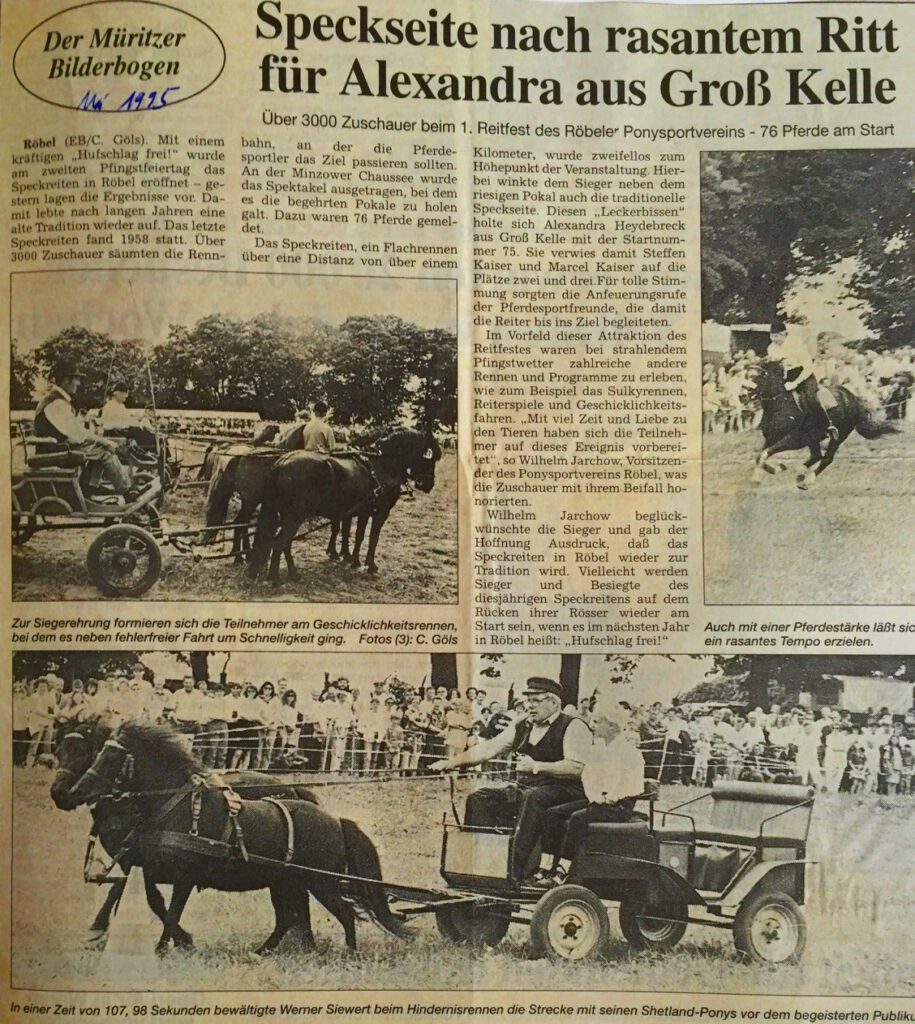Das Reit- und Fahrturnier „Speckreiten“ ist in jedem Jahr am Pfingstmontag einer der Höhepunkte im Veranstaltungskalender der Stadt Röbel/Müritz.